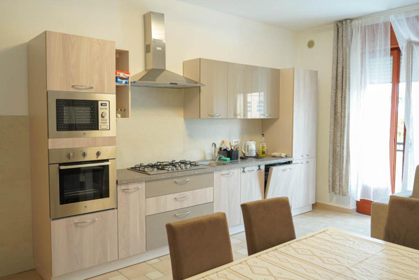 Appartamento con 3 Camere da Letto. This spacious apartment consists of 1 living room, 3 separate bedrooms and 2 bathrooms with a shower and a hairdryer. The well-fitted kitchen features a stovetop, a refrigerator, a dishwasher and kitchenware. Featuring a balcony with a quiet street view, this apartment also provides a washing machine and a flat-screen TV. The unit offers 7 beds.