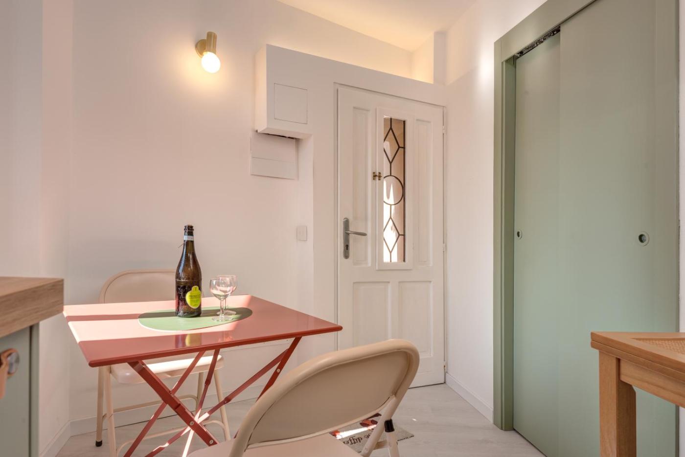 Questo appartamento offre 1 camera da letto, un soggiorno con TV a schermo piatto, una cucina con utensili e 1 bagno con bidet e doccia.