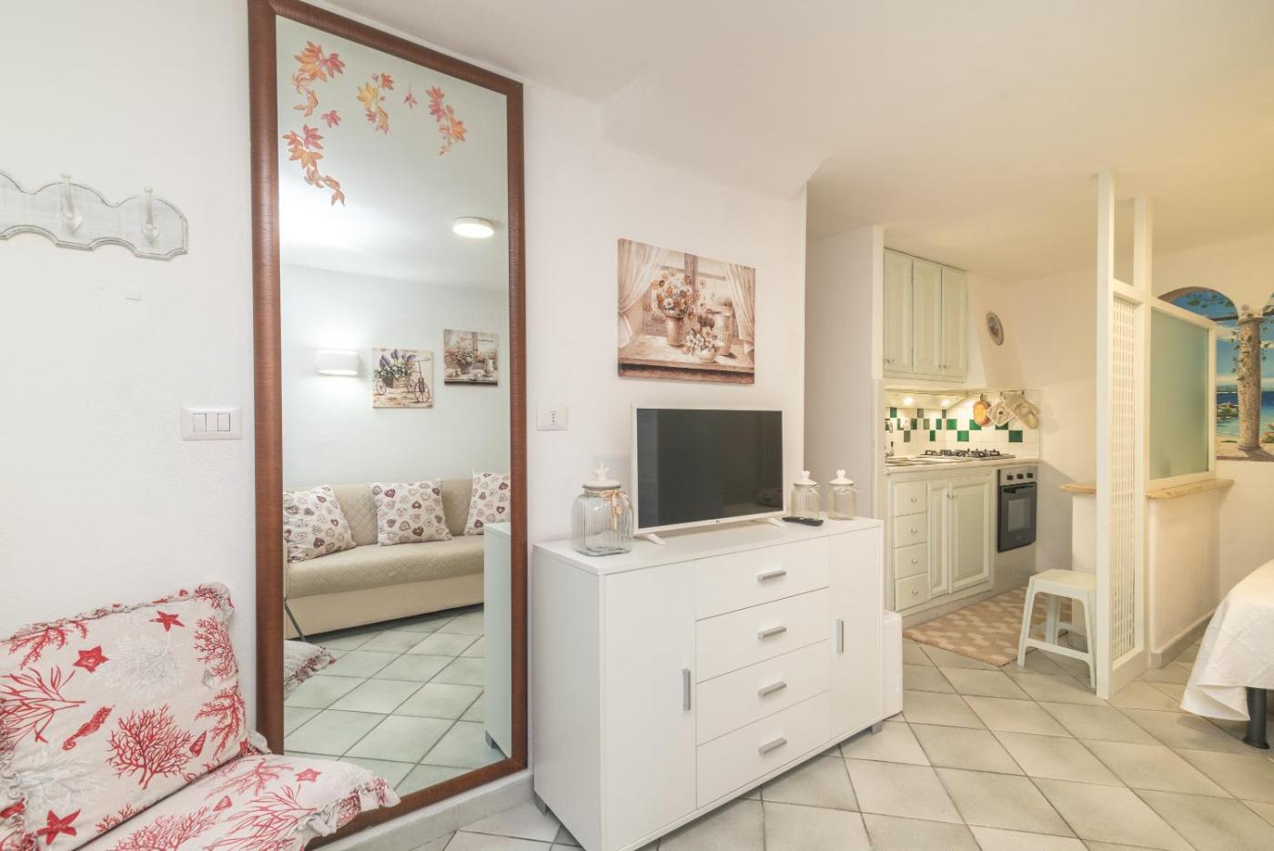 Appartamento con 1 Camera da Letto e con Giardino. This spacious apartment comprises 1 living room, 1 separate bedroom and 1 bathroom with a shower and free toiletries. The apartments kitchen, which features kitchenware and an oven, is available for cooking and storing food. The apartment provides air conditioning, a washing machine, a private entrance, a coffee machine and a TV. The unit offers 2 beds.